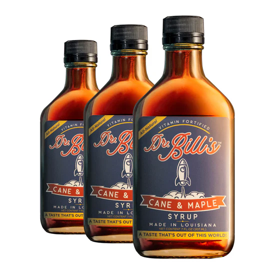 Fifteen years and two children later, Dr. Bill began combining the pure maple syrup of his Connecticut roots with the rich cane syrup beloved in the South. When his children Anna and Will declared the taste “out of this world,” Dr. Bill’s Cane & Maple Syrup was born.